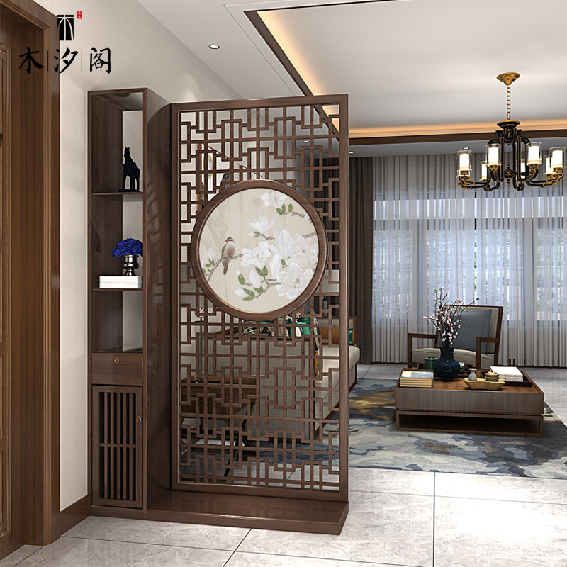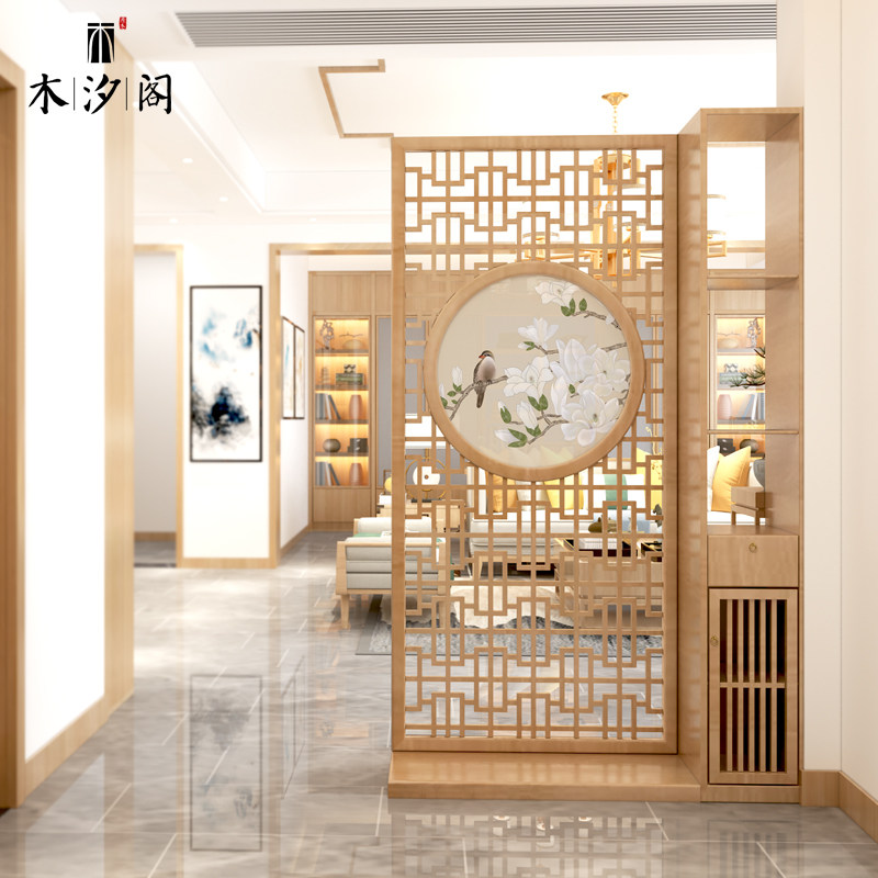 Entrance to the family Guan Guan Cabinet Screen Partition Living Room New Chinese Solid Wood Shelve Hollowed-out to the Door Home Screen