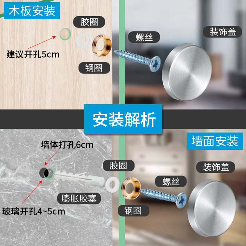 Stainless steel mirror nail advertising nail decorative nail cap acrylic glass nail fixing nail advertising screw cover ugly cover