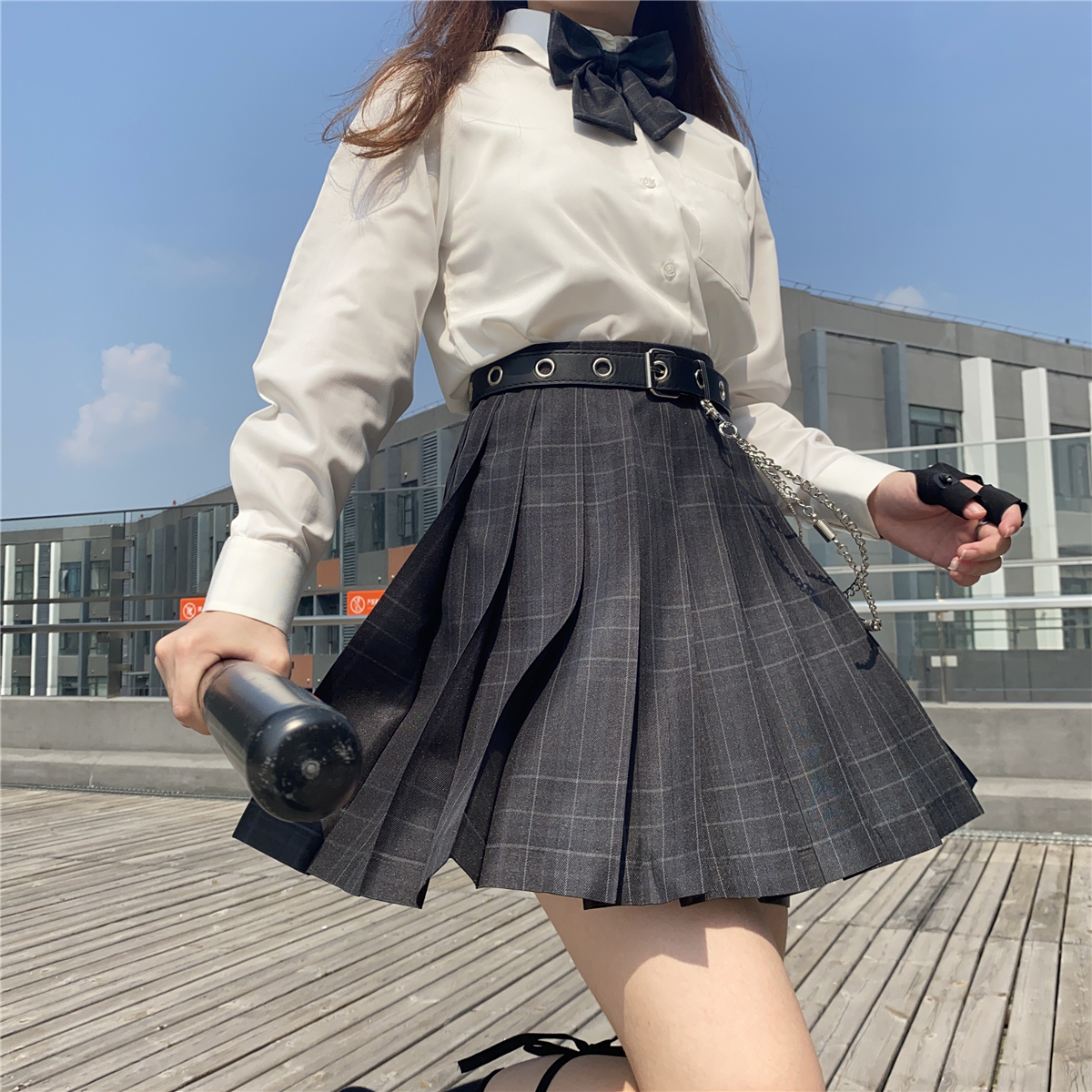 Bad dark Japanese JK uniform skirt set of college style genuine pleated jk plaid skirt suit full set of female students autumn