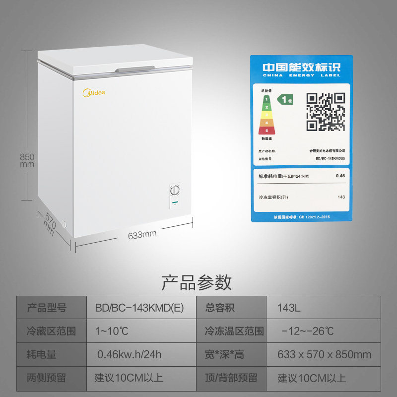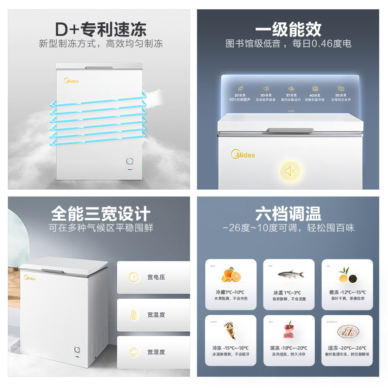 Midea Beauty BD BC-143KMD (E) Home Small Refrigerated Chilled Freezer Horizontal Energy Saving Freezer