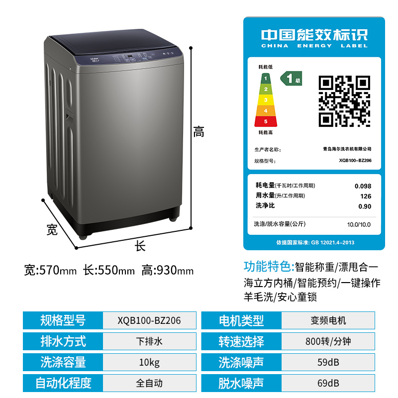 Haier 10KG full-automatic pulsator washing machine Haier 10kg direct drive variable frequency pulsator washing machine commander 10kg pulsator washing machine fixed frequency Haier prodigy 8kg direct drive variable frequency Haier Yundan 9k