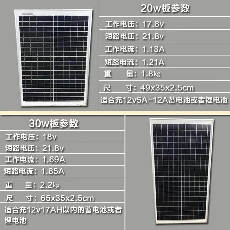 12v20 watt Small home Solar power generation plate storage battery 30w Photovoltaic charging battery Lighting charging mobile phone electric