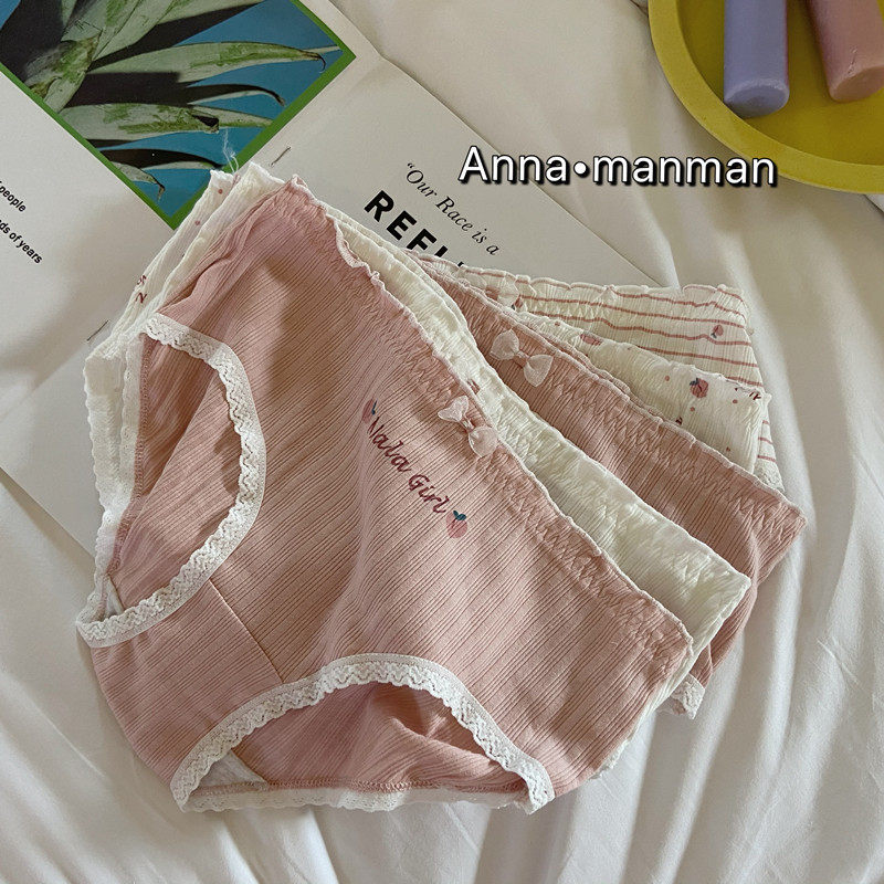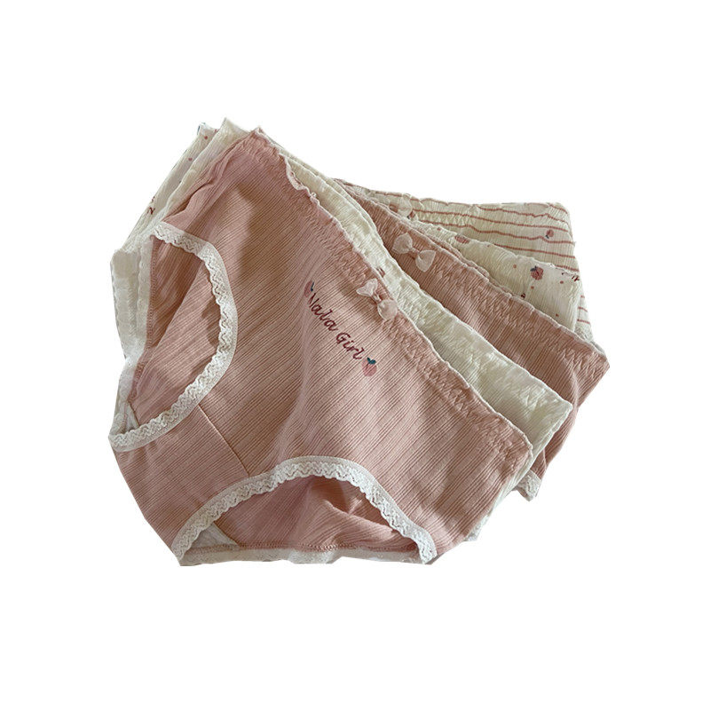 5 packs Peach Girl Sweet Fairy Powder Threaded Cotton Japanese Cute Peach Hip Mid-Waist Ladies Panties