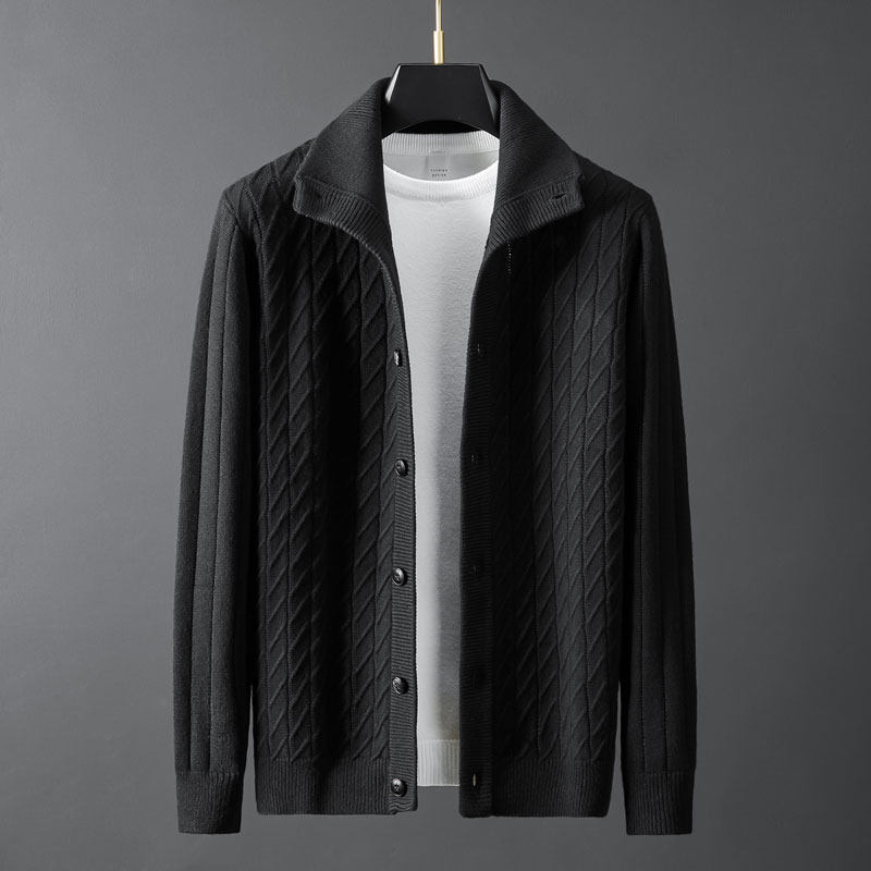 High-end handsome autumn winter new pure wool knitting sweater fashion single-row cut-off sweater coat