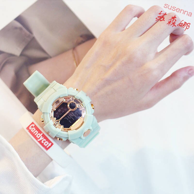 ins wind super fire smears green sports electronic meters schoolgirl han edition minimalist college wind watches night light waterproof