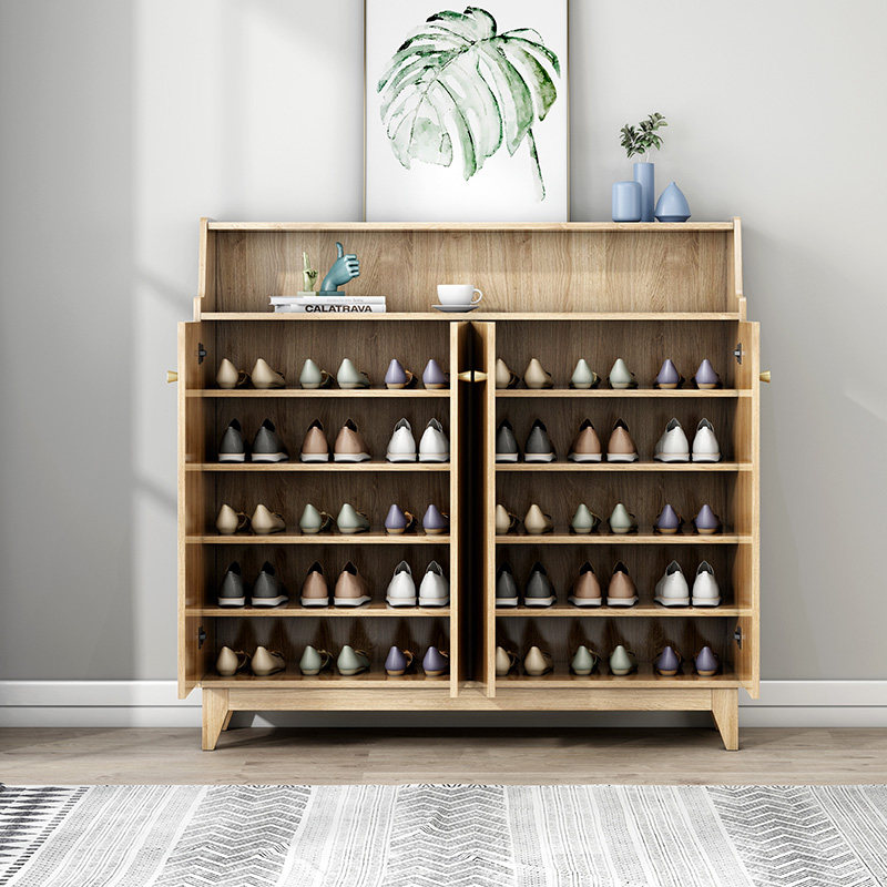 Solid wood shoe cabinet doorway large capacity containing storage modern minima balcony living room door hall Xuanguan cabinet Nordic
