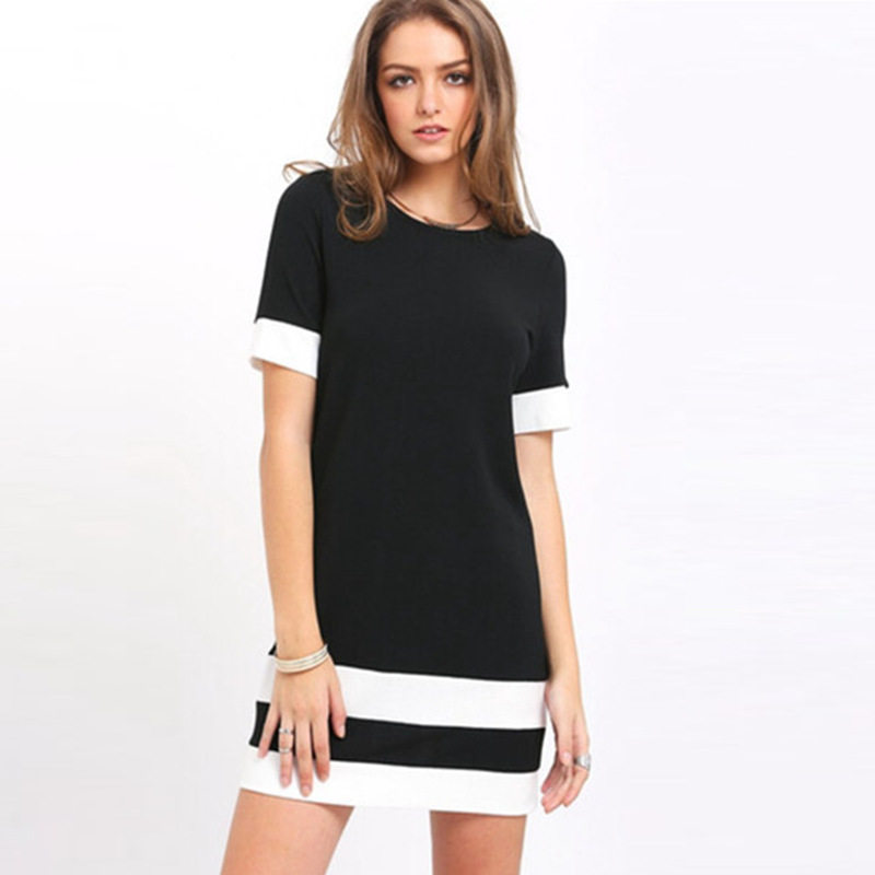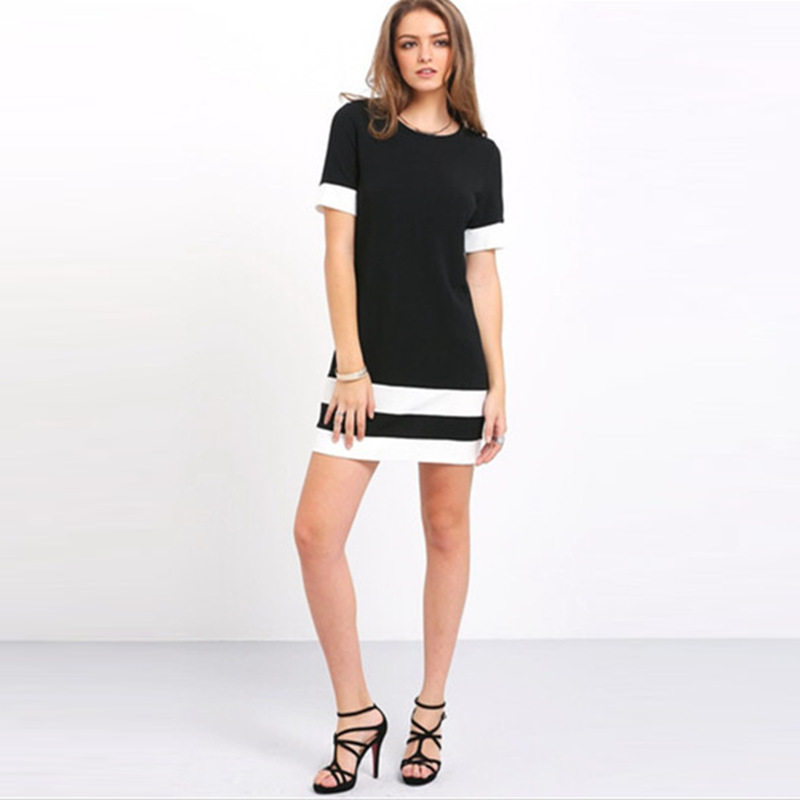 women dress plain black and white short sleeved T-shirt
