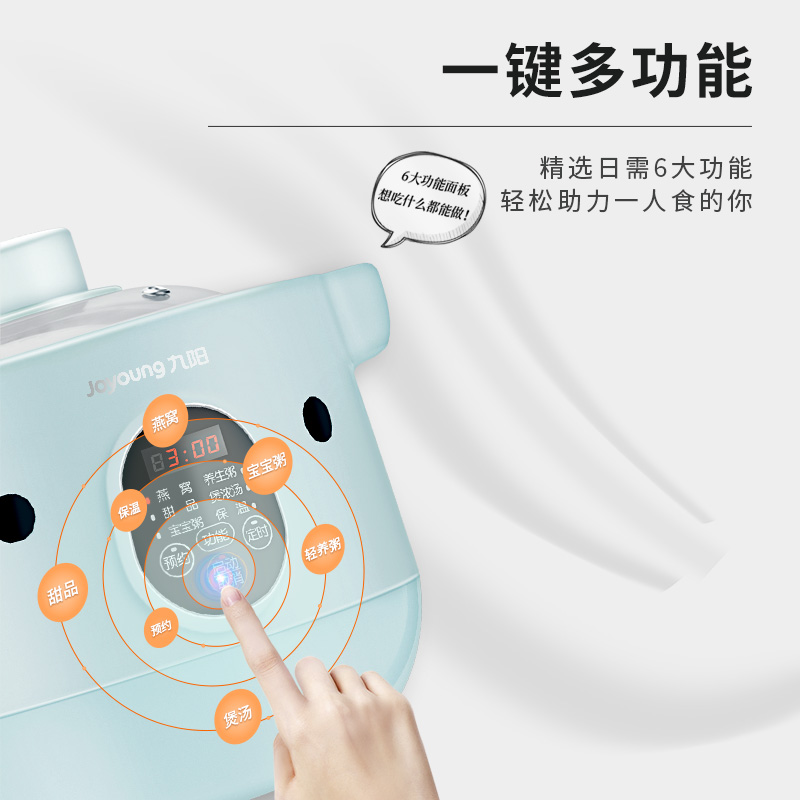Jiuyang one person food electric saucepan home fully automatic ceramic saucepan soup cooking porridge pan cohorra small stew for 1-2 people
