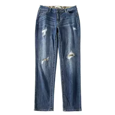Foreign trade Europe and the United States large size women's spring and summer clothes fat mm repair program hole jeans BF smoke pipe pants 200 kg