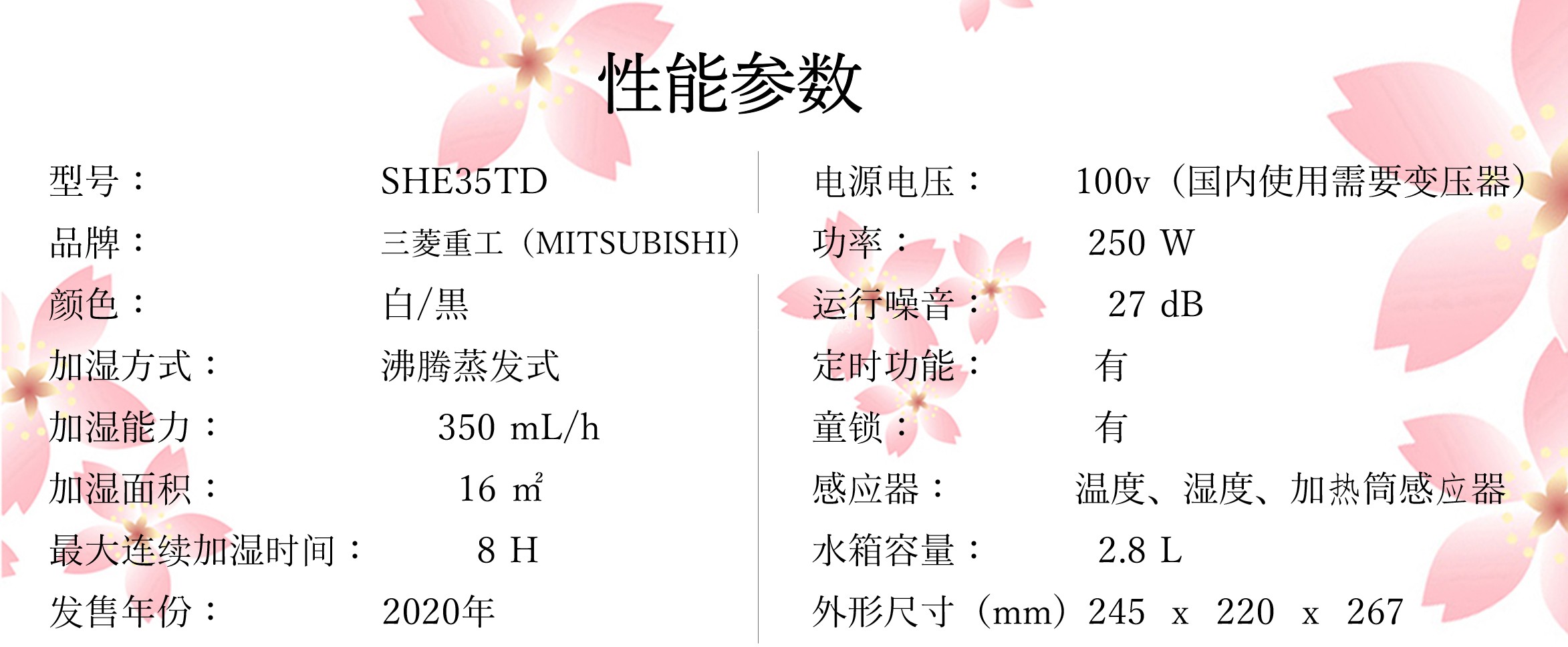 Japan Direct Mail New Smart Mitsubishi Humidifiers SHE35VD Bacteriostatic Boiling and Boiling Steamed