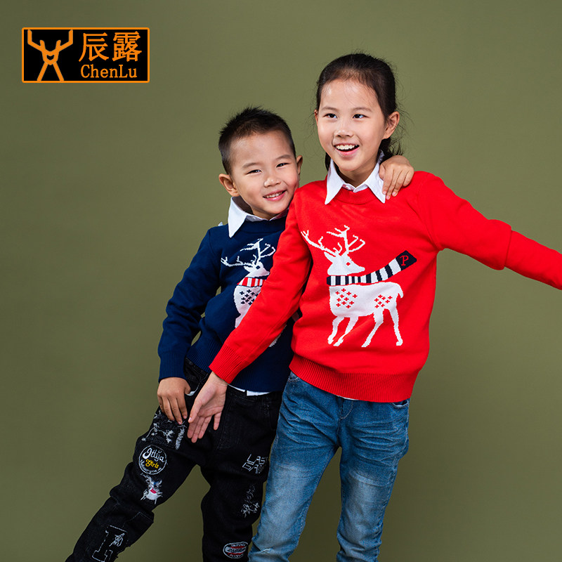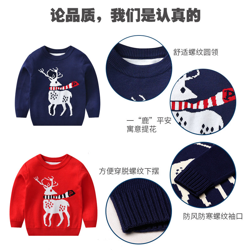 Boy's Christmas sweater long sleeve small children's knitted sweatshirt female wool weaters warm autumn and winter child clothing thickened tides