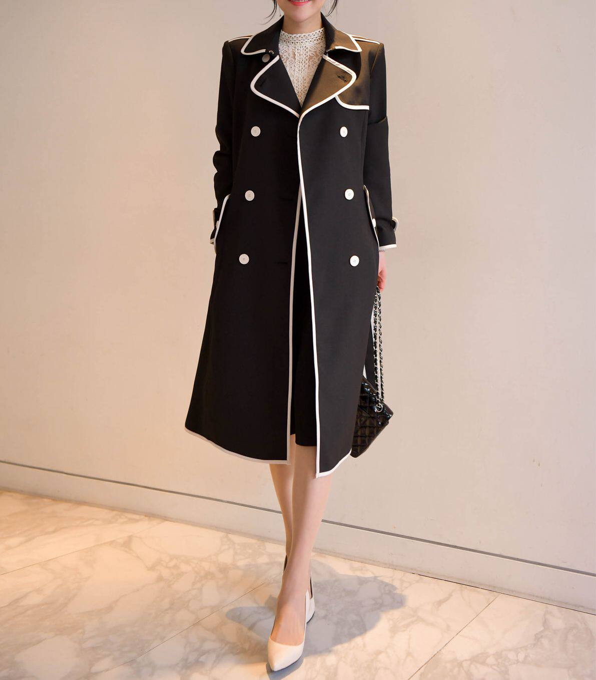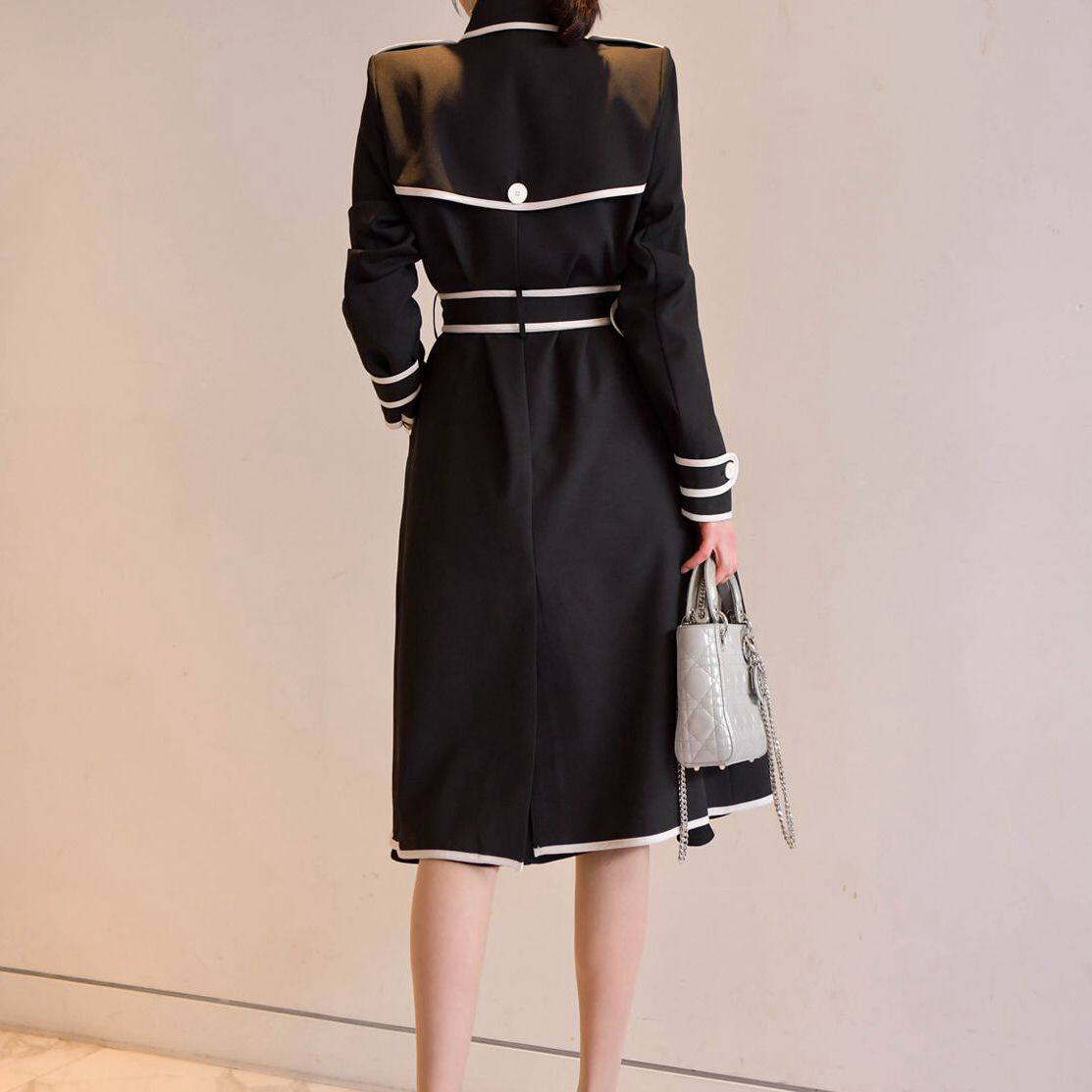 Color Rolling Side Cognitive Temperament Windcoat Jacket Mid-long version Career commuter Korea Autumn Dress New