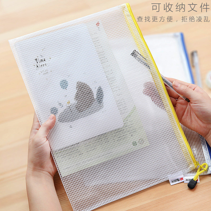 Morning Light A4 Grid File Bag Racing bag South Korea Xiaoqing New waterproof student large capacity transparent canvas archival bag