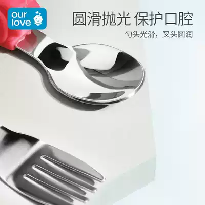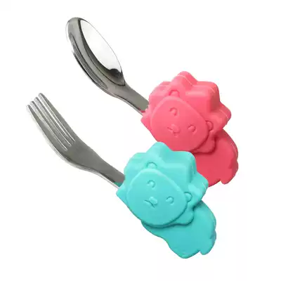 Little baby learns to eat spoon Silicone short handle training spoon fork Baby children eat non-staple food spoon cartoon tableware set