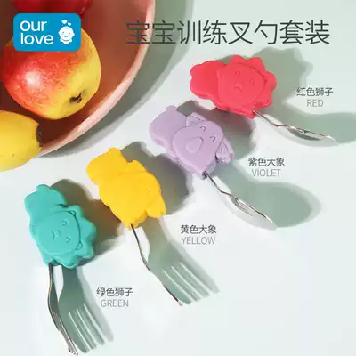 Lion red spoon fork (free storage box) Lion green spoon fork(free storage box) Elephant yellow spoon fork(free storage box) Elephant purple spoon fork (free storage box)