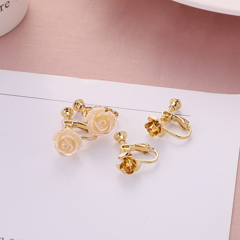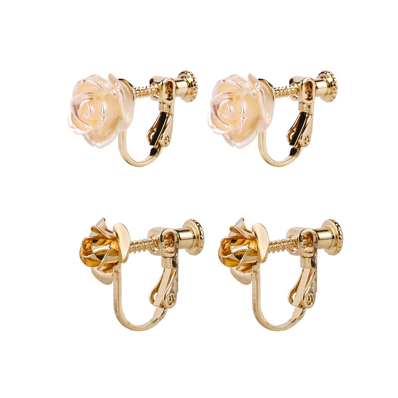 (469) golden rose screw ear clip (469) white champagne rose screw ear clip