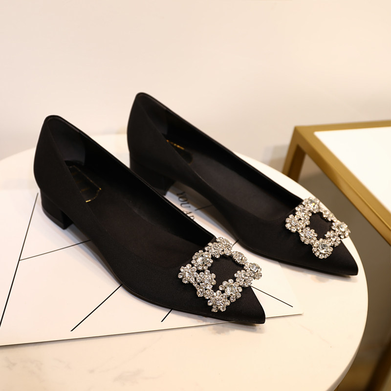 Givenivan wedding shoes women's rhinestone square buckle pointed toe 2022 new champagne crystal shallow mouth thick heel shoes