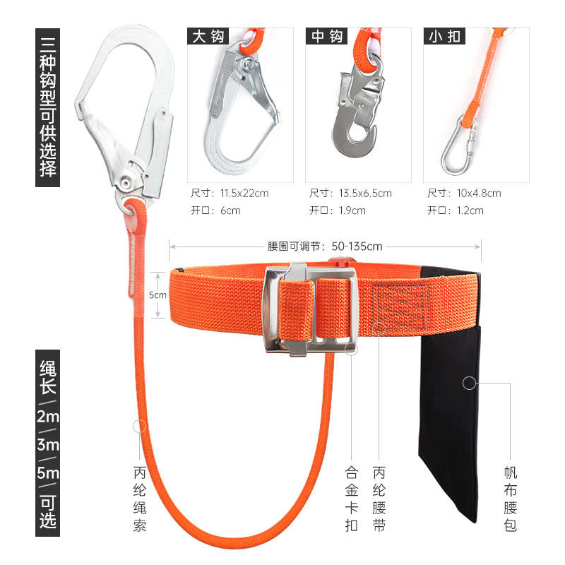 Single waist small hook rope length 2 m single waist small hook rope length 3 m single waist small hook rope length 5 m single waist middle hook rope length 2 m single waist middle hook rope length 3 m single waist middle hook rope length 5 m single waist large hook rope length