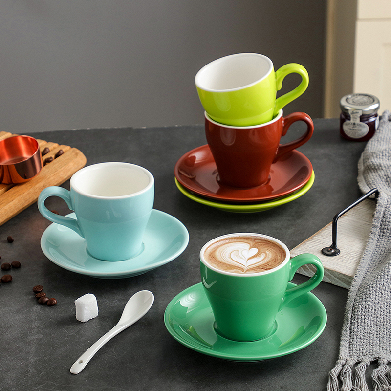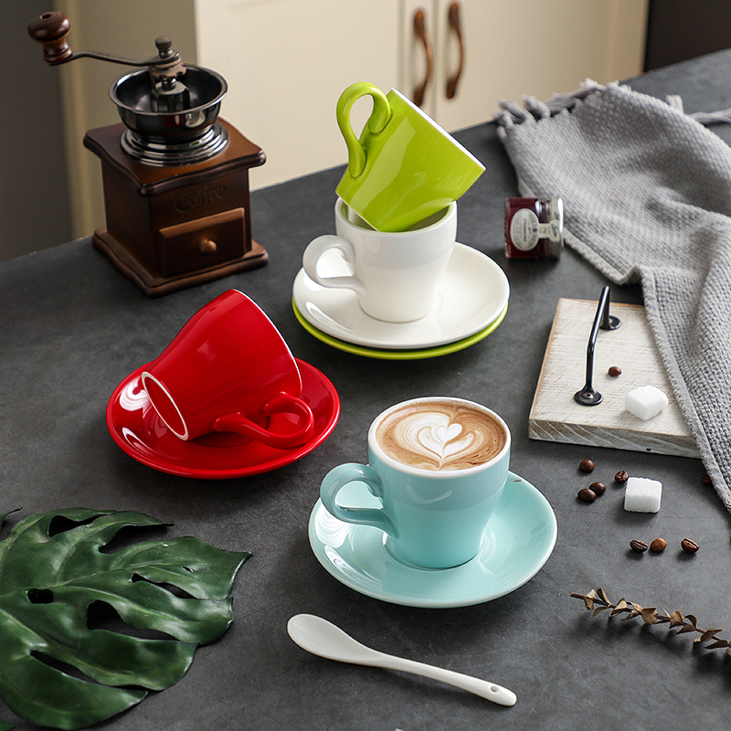 Fujiale ceramic coffee cup set cup saucer latte cup kabu cup 180ml color glaze pull flower cup thickened