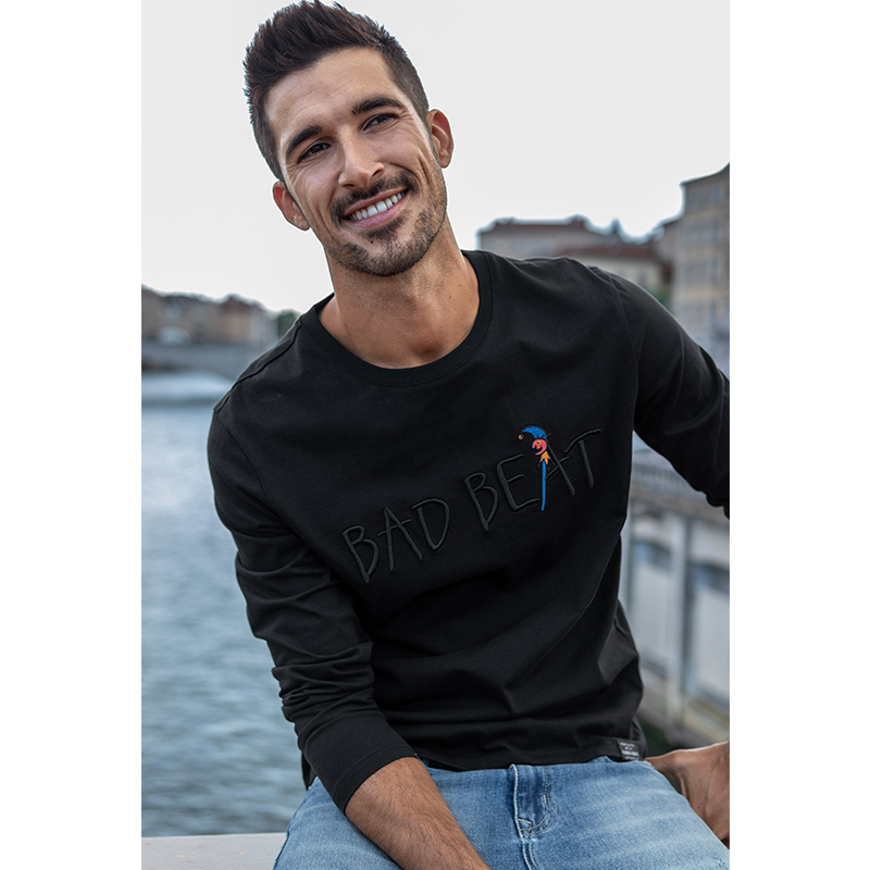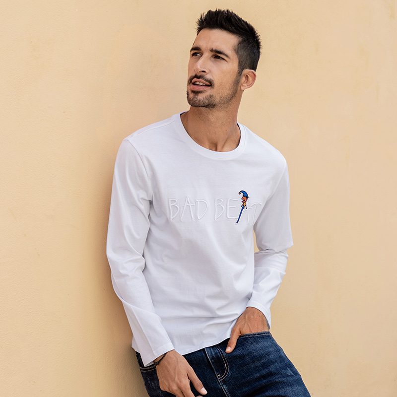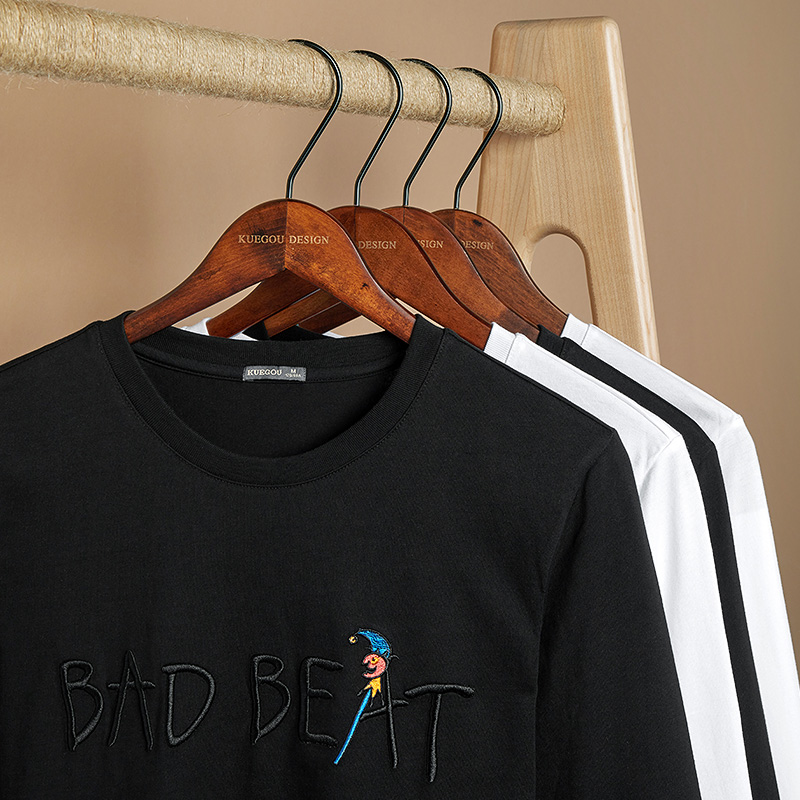 Cool clothes shopping Men's long-sleeved T-shirt Men's autumn simple embroidery round neck cotton T-shirt trendy clothes 88106