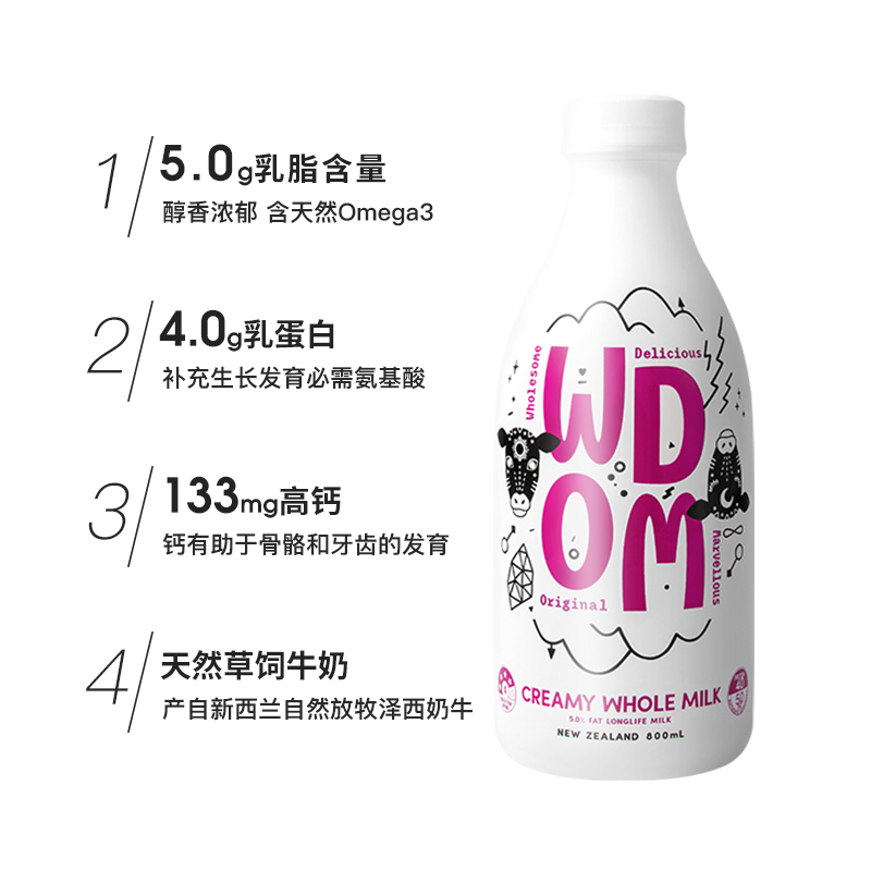 New Zealand WDOM Wokang 5 0 whole fat pure milk high calcium 4 0 protein imported breakfast 800ml*12 bottles
