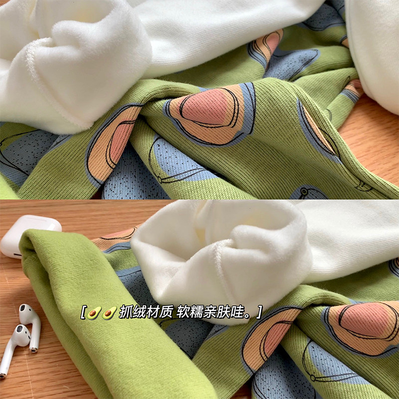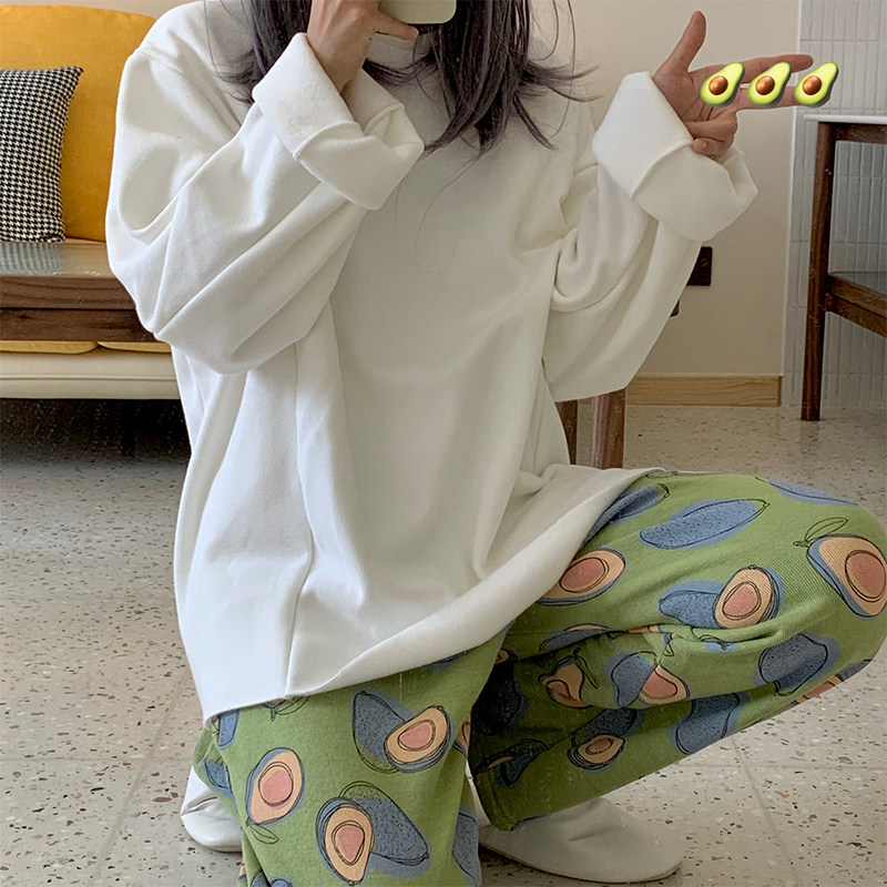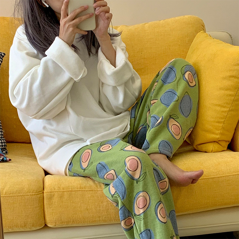 Autumn-winter home Cute Bull Oil Fruits Plus Suede Loose and soft home for long version of sleeping pants
