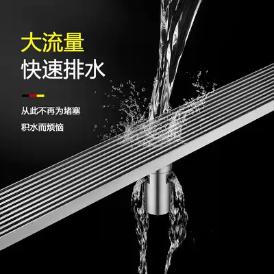 Stainless steel floor drain deodorizer Powder room thickened long strip shower room Rectangular bathroom extended balcony side row
