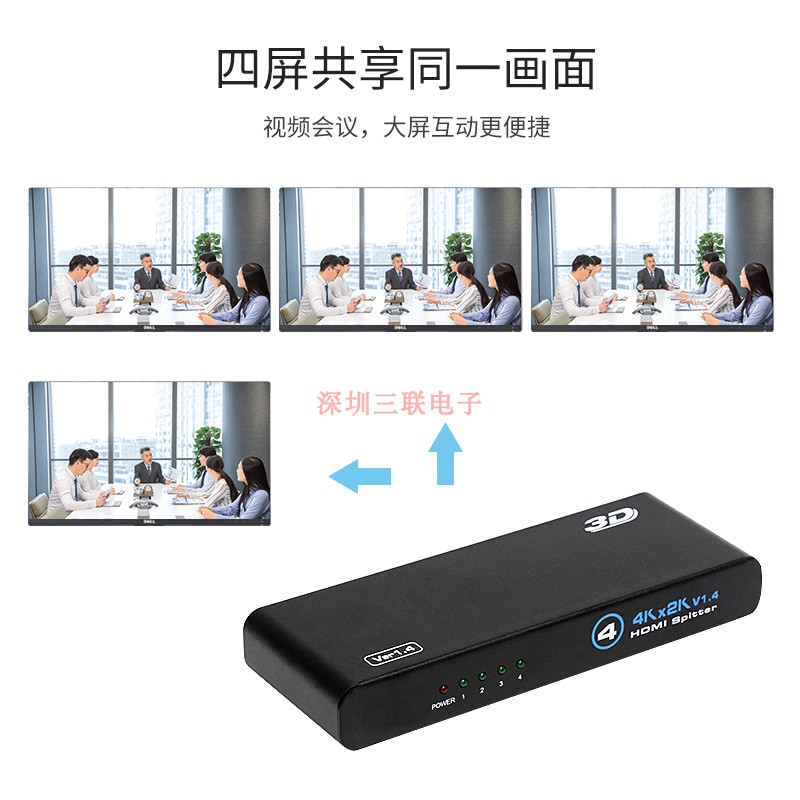 Industrial grade HDMI dispenser 1 in 2 4 out of high picture quality TV split screen 3D film 10%-4 divider