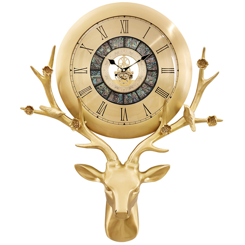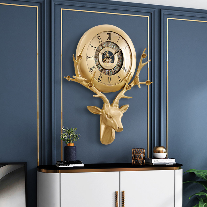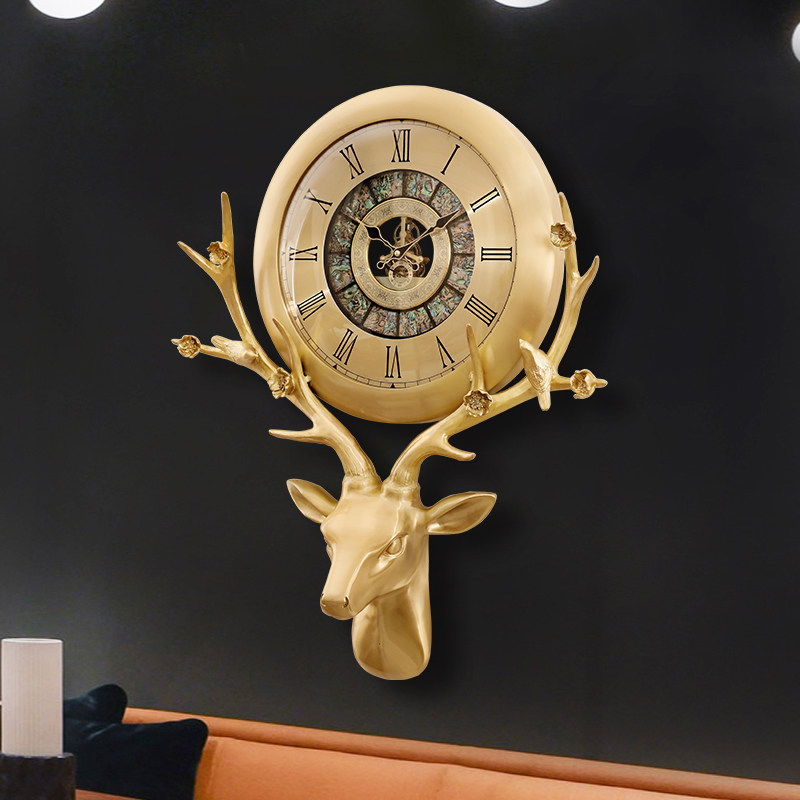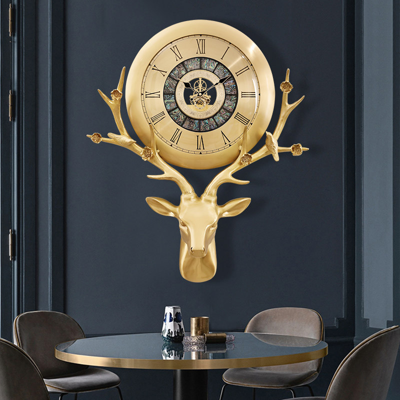 Light luxury red brass deer clock watch modern atmosphere household clock decorated clock wall with European-style living room