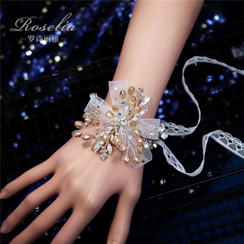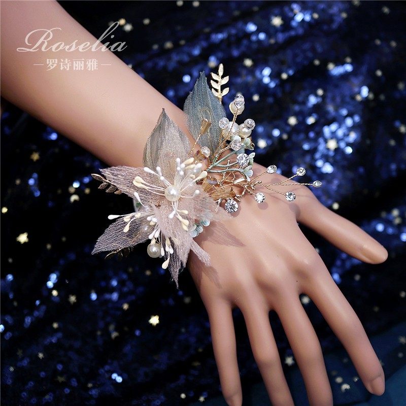 High-end wrist flower bridal bridesmaid's sister group hands tied flowers Mori's meritocratic flower lace wedding performance bracelet