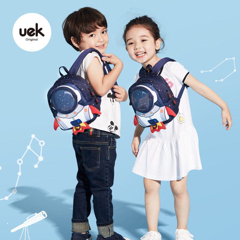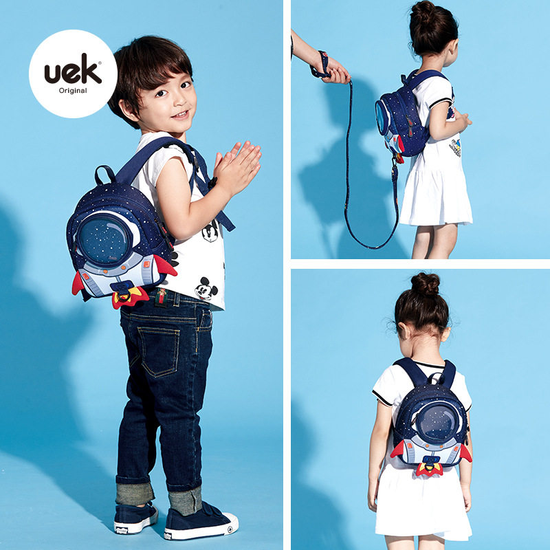 uek anti-lost backpack 1-3-6 years old boys and girls small school bag cartoon cute cute baby backpack 3d rocket astronaut creative backpack kindergarten baby light outing backpack