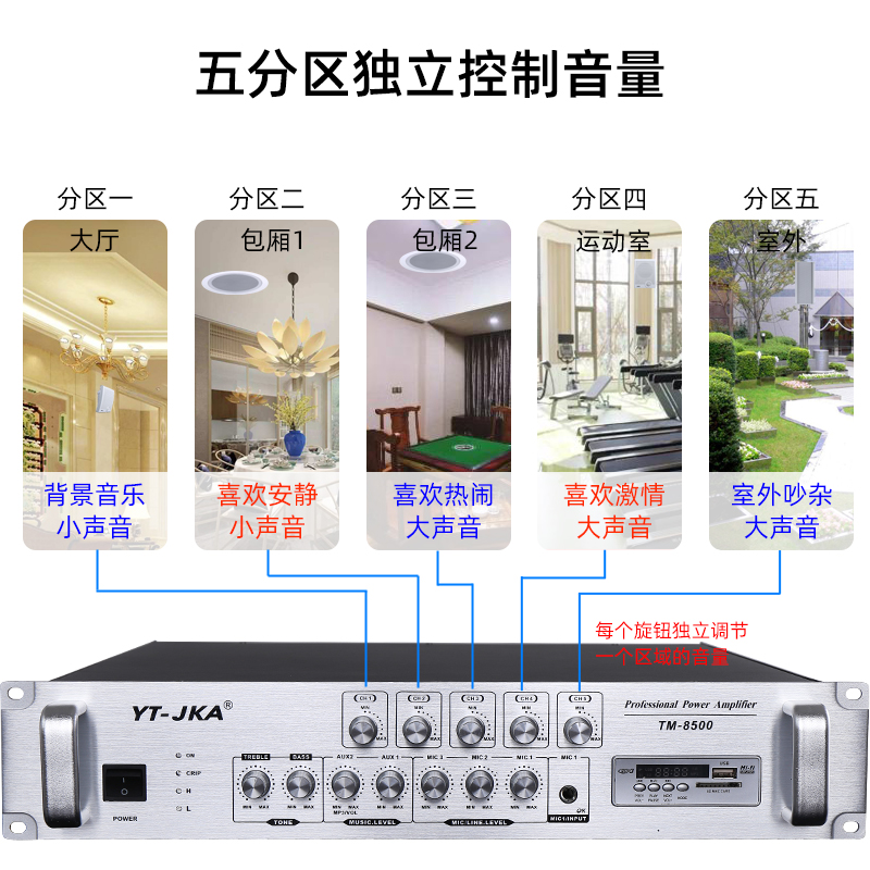 YT-JKA TM-8500 constant pressure power amplifier high-power five partition background music power amplifier public broadcasting