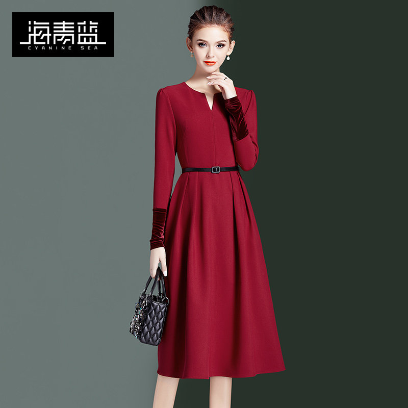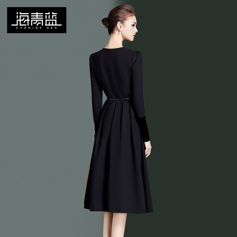 Haiqing Blue Herben Wind Dress Spring 2022 New Woman Black Temperament Cashew a large swing dress 52416