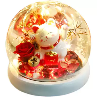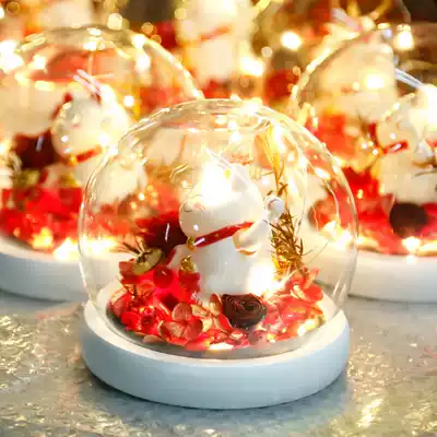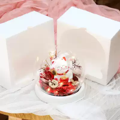 Creative lucky cat forever flower glass cover with lamp Christmas rose teacher's day send teacher exquisite gift box