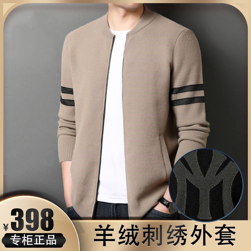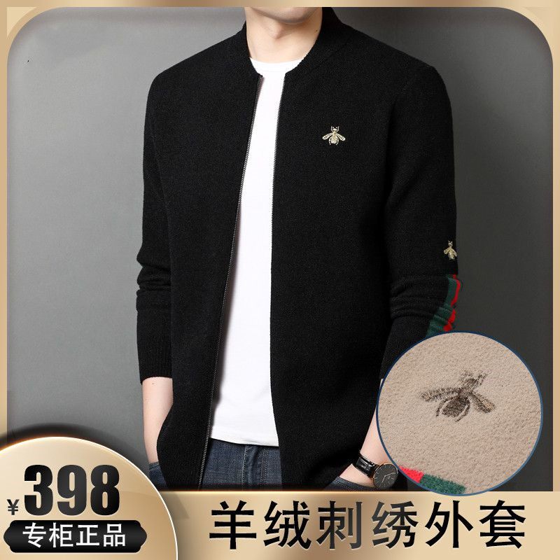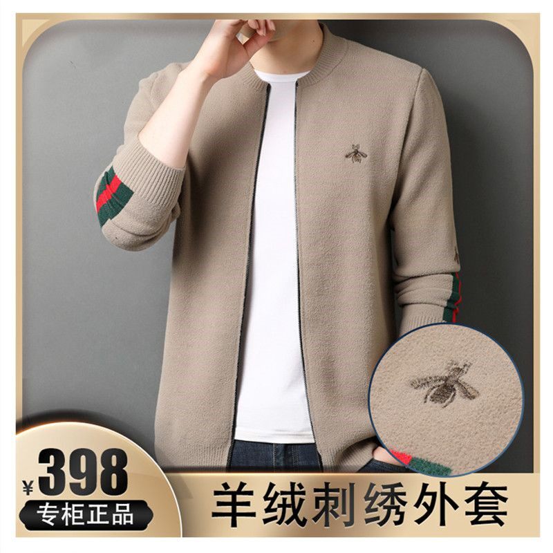 2020 Autumn Men's Embroidered Pure Wool Sweater Men's Knitted Soft Collar Cardigan Fashion Thin Section Large Size Jacket Trendy Men's Clothes