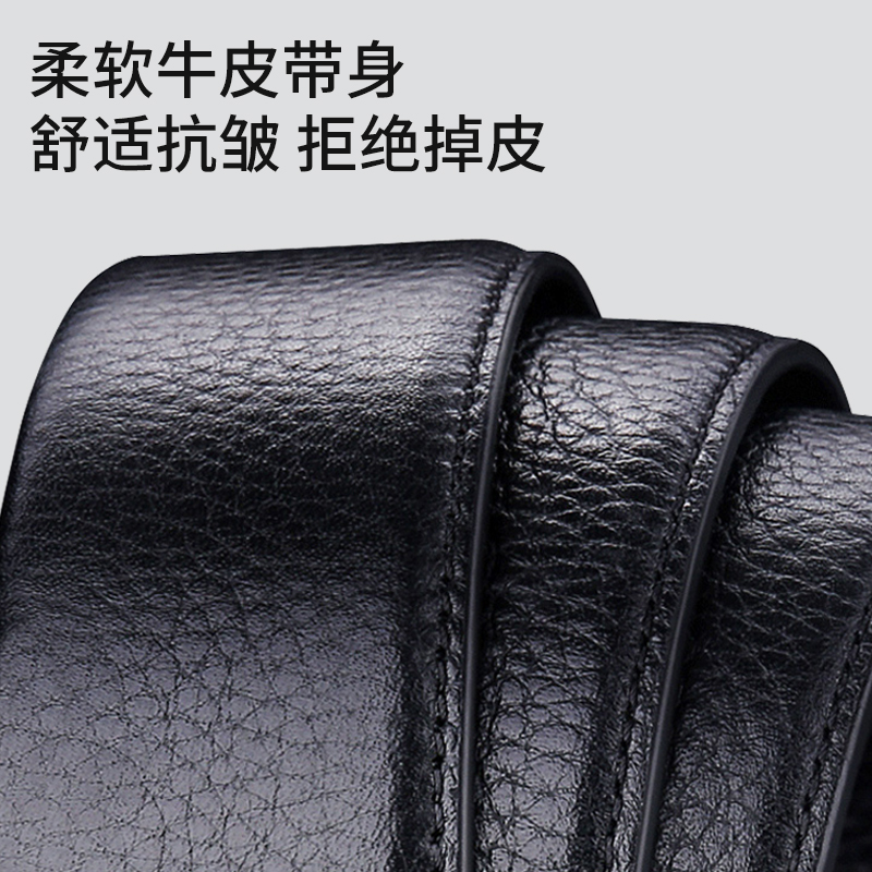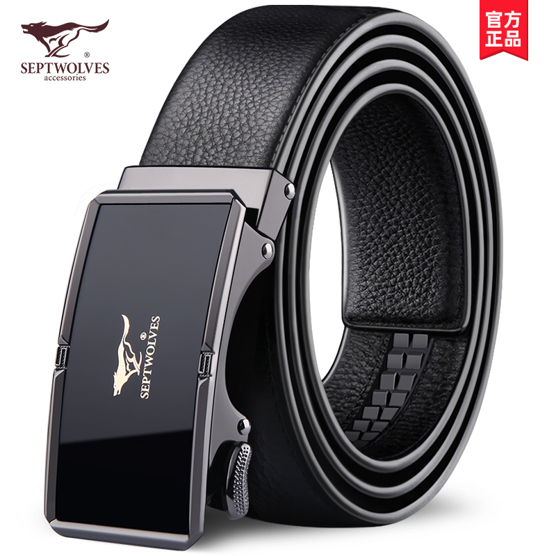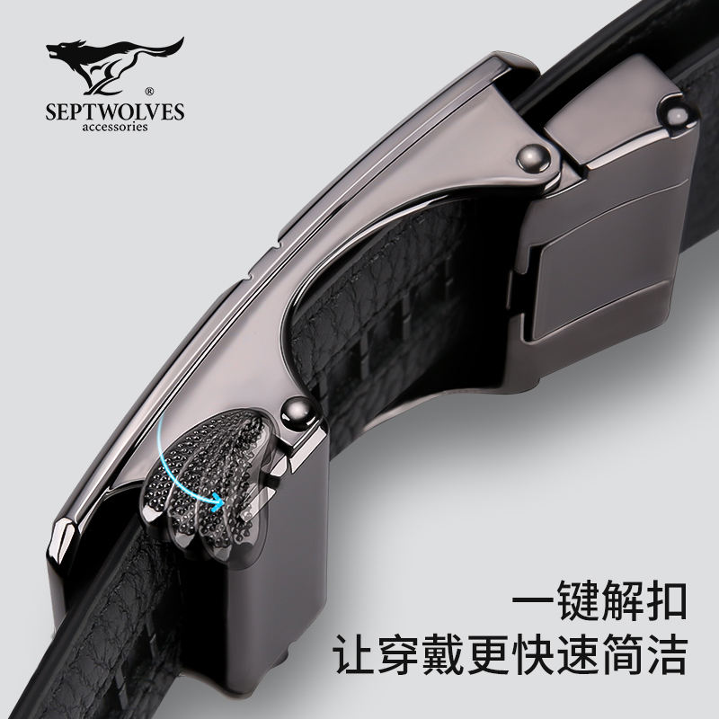 Seven Wolves Men's Leather Strap Genuine Leather Automatic Buckle Belt Luxury luxury Middle-aged Pure Business Head Layer Bull Leather Pants Strap