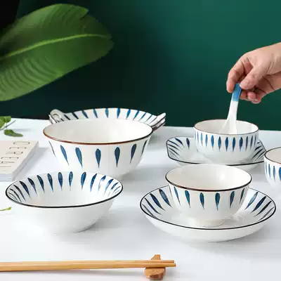 Japanese tableware Ramen bowl Ceramic large household noodle soup bowl Fruit salad bowl Wide mouth horn hat bowl