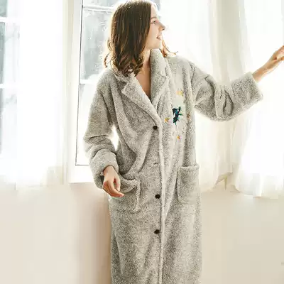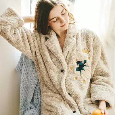 Coral velvet robe women's winter thickened pajamas autumn flannel warm bathrobe can be worn in home clothes