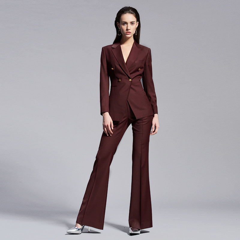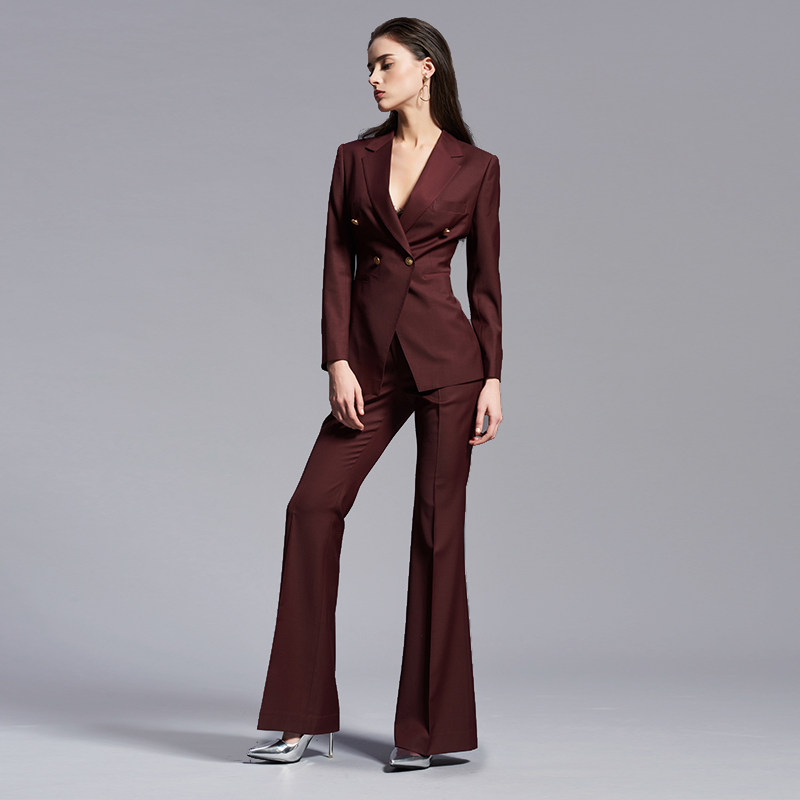 LadySElite Ladies Blazer Two-Piece Women's Metal Buckle Wool Autumn Winter High End Western Suit Trousers Smart