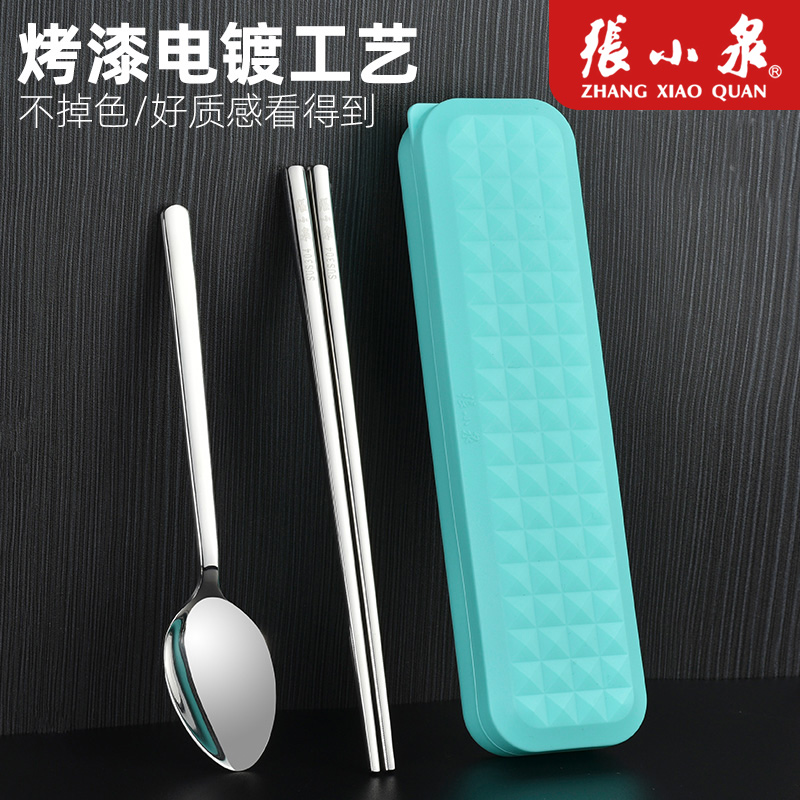 Zhang Xiaoquan chopsticks spoon cutlery set cute three-piece children's student portable take-away stainless steel cutlery box