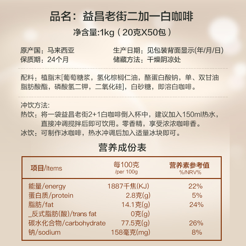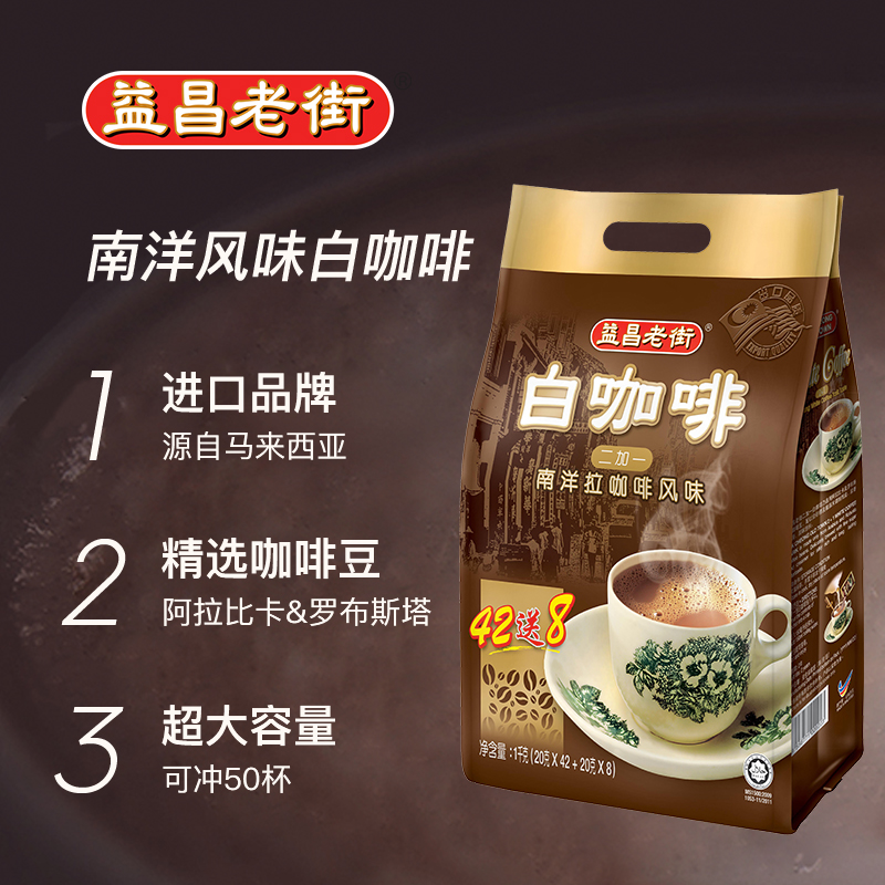 Malaysia original imported Yichang Old Street 2 1 original flavor three-in-one soluble white coffee powder 1000g*2 bag packed