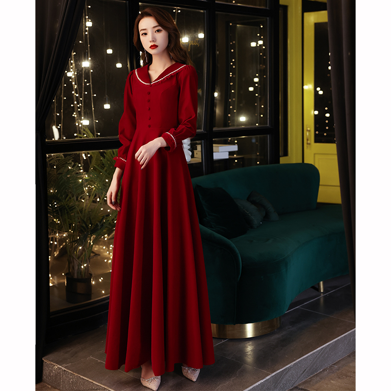 Toast to the bride can normally wear a wine red color back door engagement foreign dress little sub gown dress woman everyday poop dress.