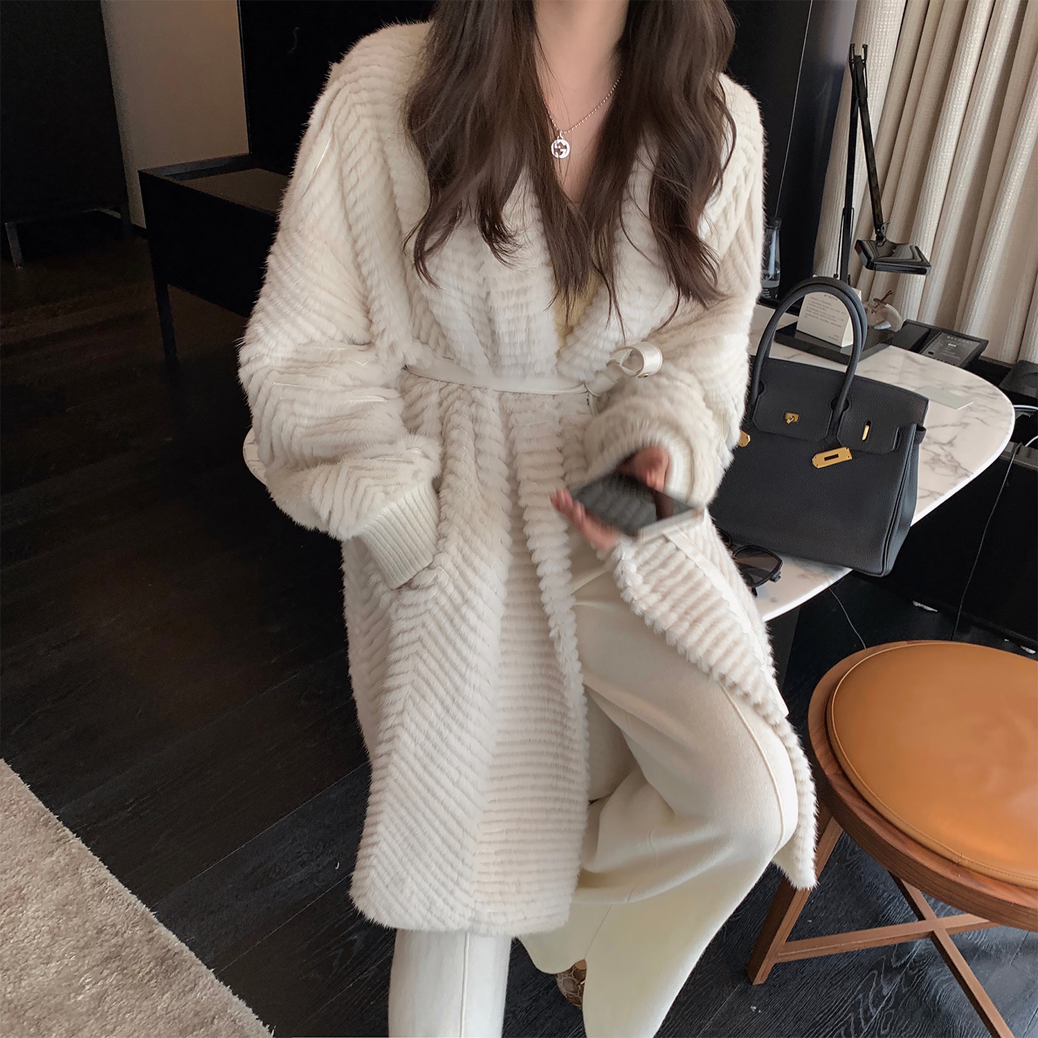 Fu Zhien Ingenuity Series Imported Mink Fur Coat Women's Long Version Cashmere Mink Coat Women's 2021 Winter
