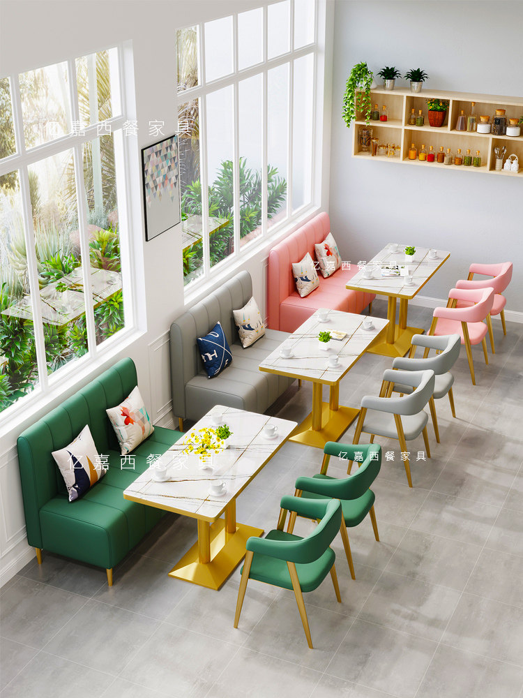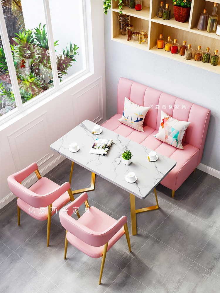 Milk tea shop table and chair combination simple fresh dessert hamburger cold drink dining cafe sofa restaurant against the wall card seat