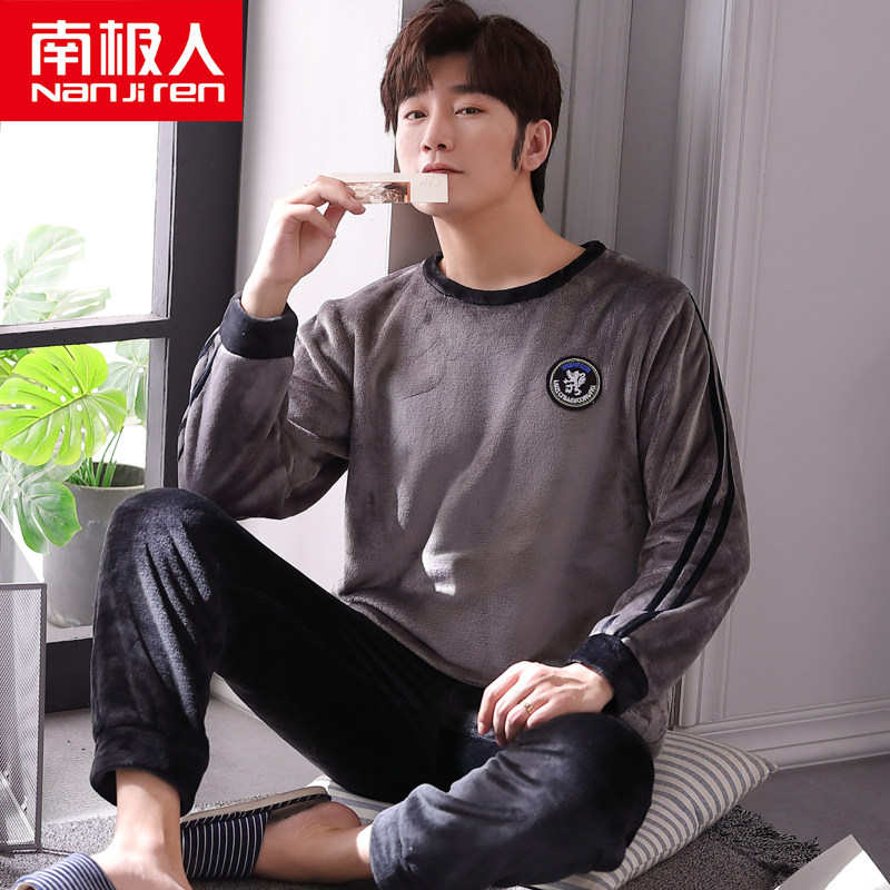 South Pole Coral Suede Pyjamas for men's autumn and winter style Thickened Warm Flannel Suede Men Winter Home Suit Suit