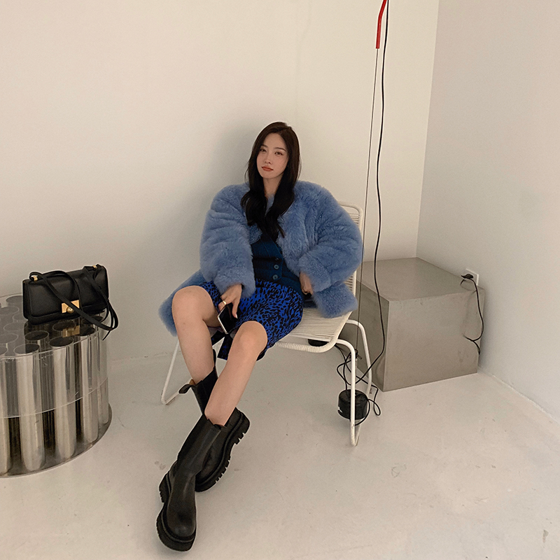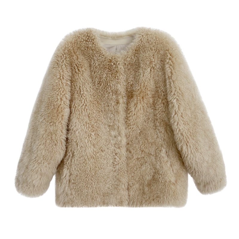 Pay Zen sticky rice nourishing cashmere fur integrated female round neckline with long version of leather straw jacket young with winter