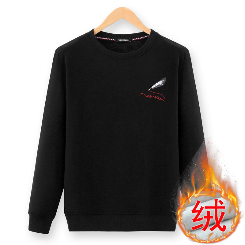 Men's fleece thickened sweater pure cotton pullover round neck fat man jacket plus size men's trendy bottoming shirt autumn and winter models