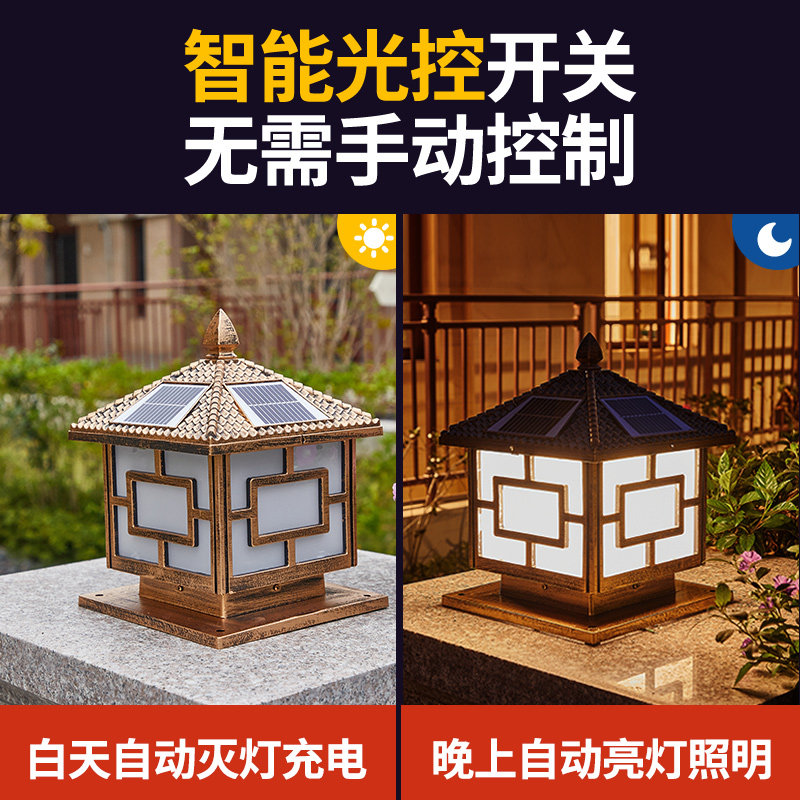 Solar garden column head light Garden decoration Villa door light Outdoor wall light Door post light Waterproof column light