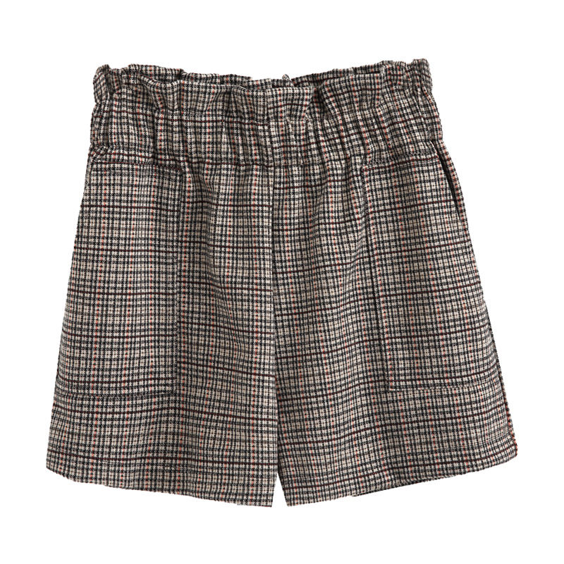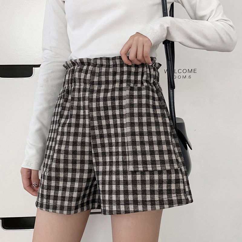 Plaid shorts women's loose thin wide legs a-line high waist casual pants 2020 new autumn straight tube pants