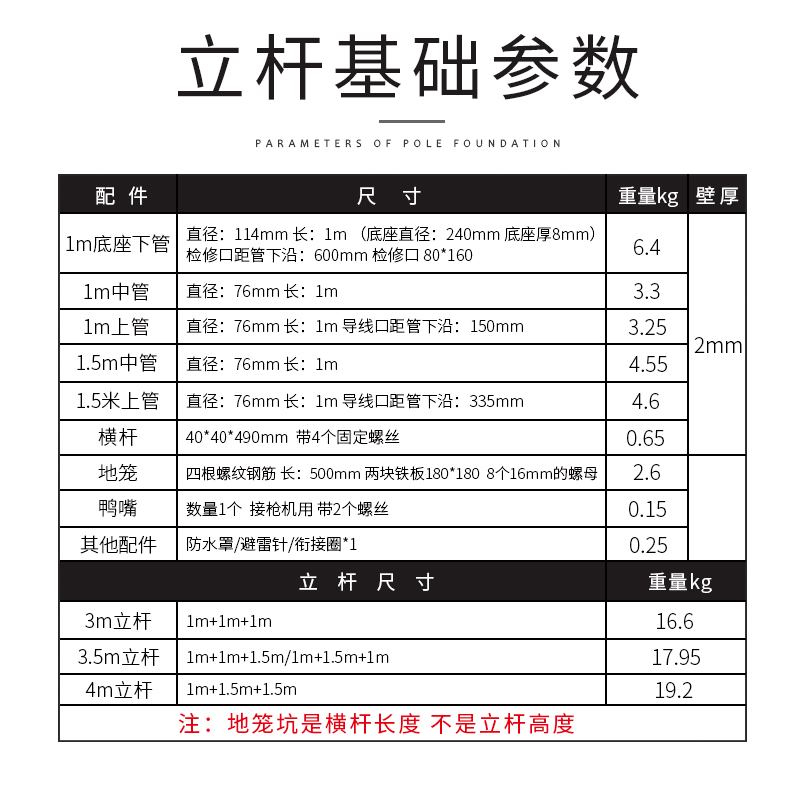Monitoring combination vertical pole 3 meters 4 meters 5 meters variable diameter combination community monitoring detachable street light pole monitoring bracket